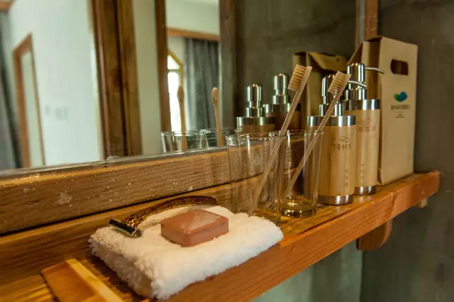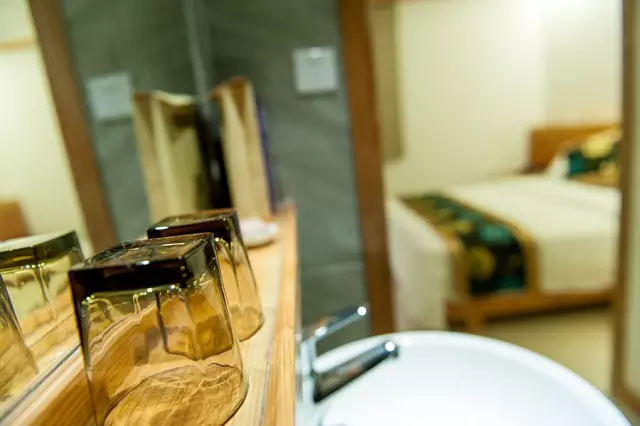 房间里的布草依照四星级酒店的标准,这个从精致的浴室日用品中就可见一斑。