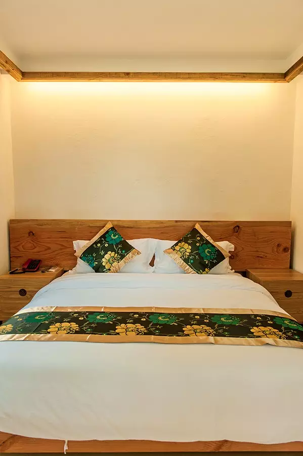 床靠和床架均为实木打造