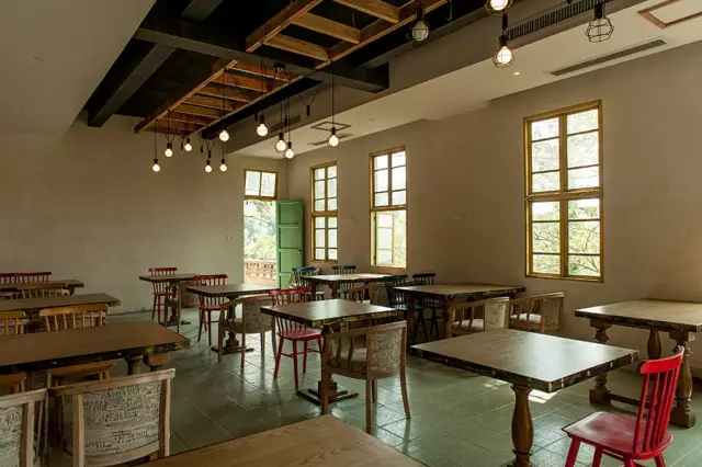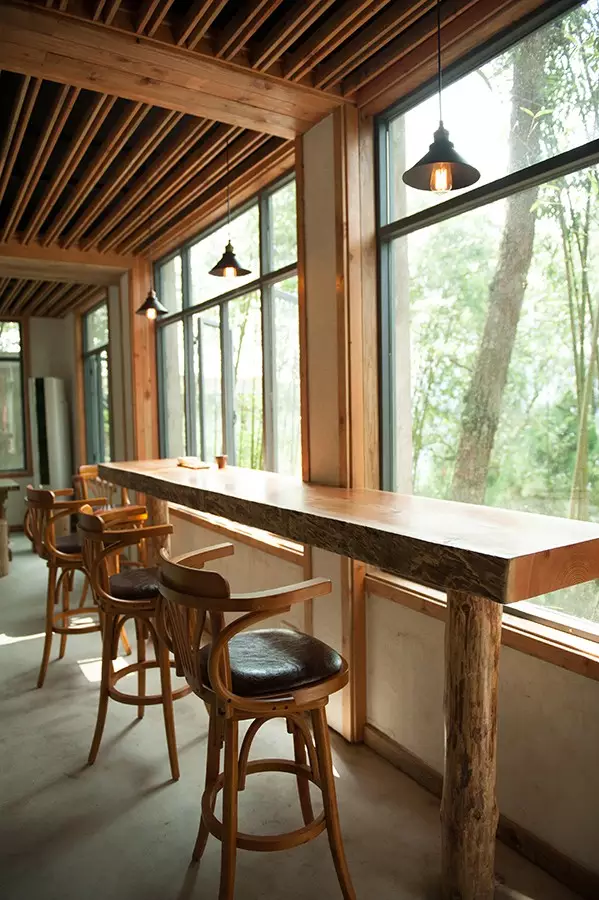 二楼除了餐吧外,还有独立的包厢,难得的是包厢如同置身风景中,有大面积的窗户联系着外界山林。
