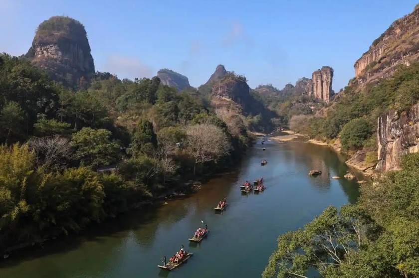 紧随其后的2月21日(正月初五),游客们选择了乘坐竹筏,在风景如画的九曲溪上尽情游览,享受着大自然赐予的宁静与美丽。